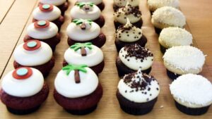 Choose from our rotating daily menu of gourmet cupcake flavors like banana, black and white, chai latte, cuban coffee, dark chocolate, red velvet, strawberry, vanilla, and more.